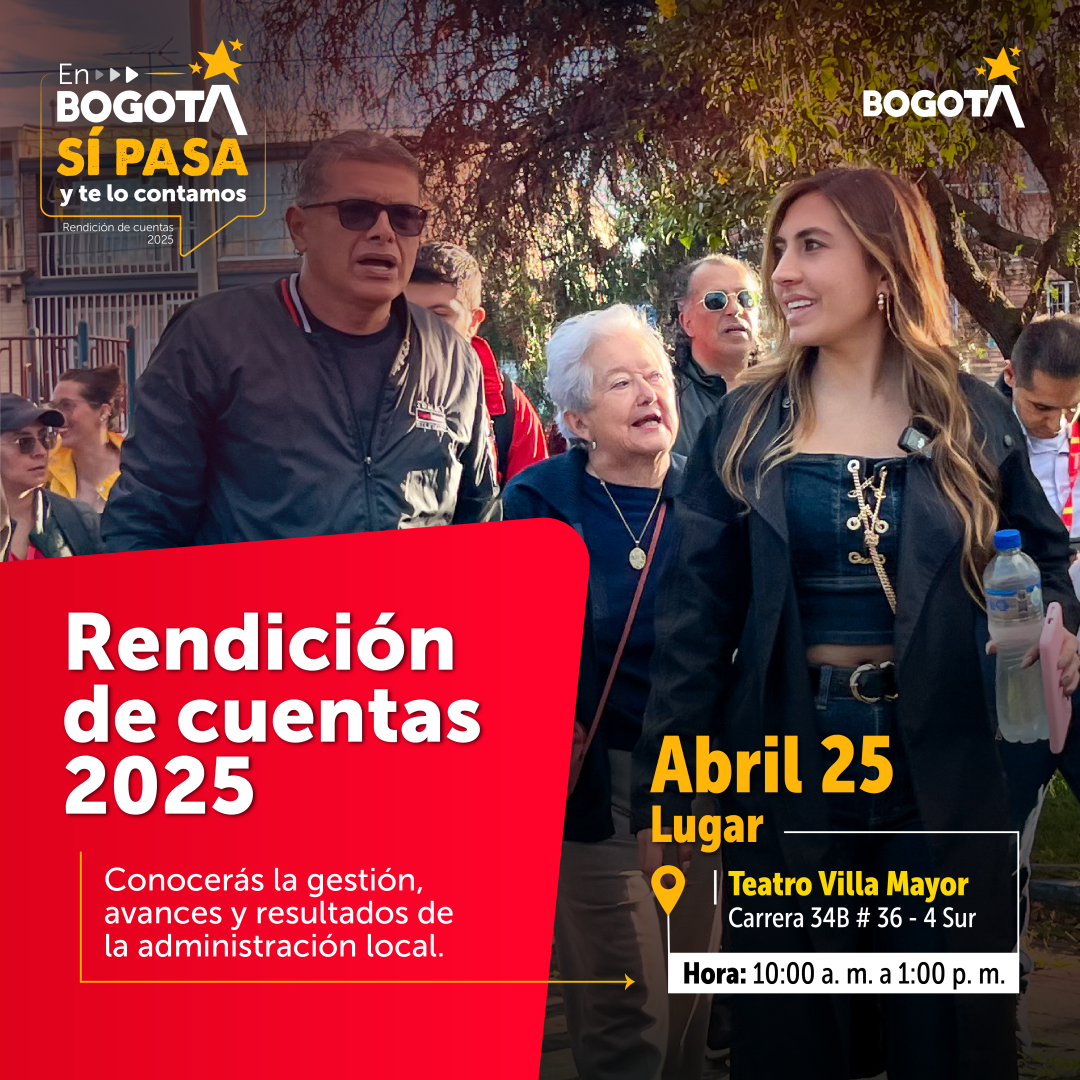 La jornada permitirá socializar ante la ciudadanía los principales avances, inversiones y resultados de la gestión local correspondientes a la vigencia 2025. El encuentro se desarrollará el próximo 25 de abril, de 10:00 a.m. a 1:00 p.m., en Teatro Villa Mayor.