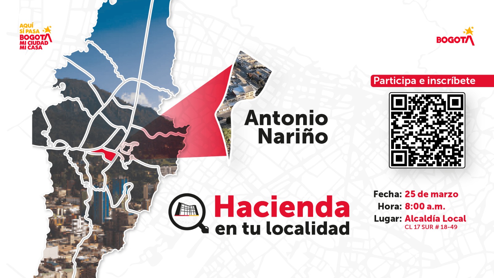 La estrategia Hacienda en tu localidad llega este 25 de marzo a Antonio Nariño. La ciudadanía podrá conocer en qué se invierten los impuestos, recibir orientación sobre trámites tributarios y acceder a servicios en un espacio cercano y pedagógico que se realiza en las 20 localidades de Bogotá.