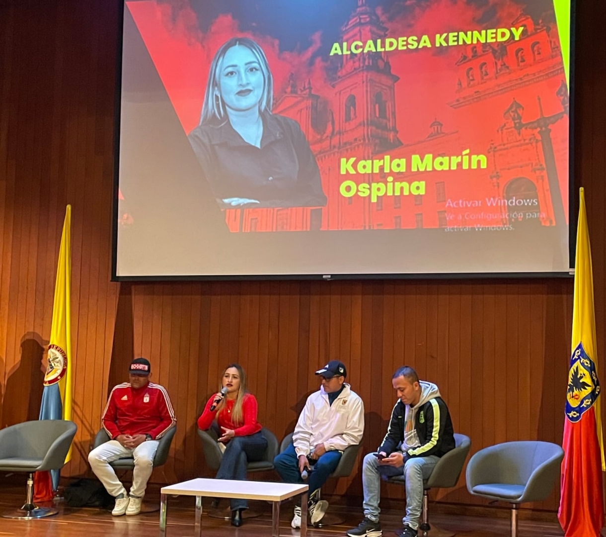 El conversatorio contó con la presencia de la alcaldesa local, Karla Marín Ospina, quien destacó la importancia de estos espacios para fortalecer los lazos entre la comunidad y la administración, promoviendo el fútbol como una herramienta de transformación social.