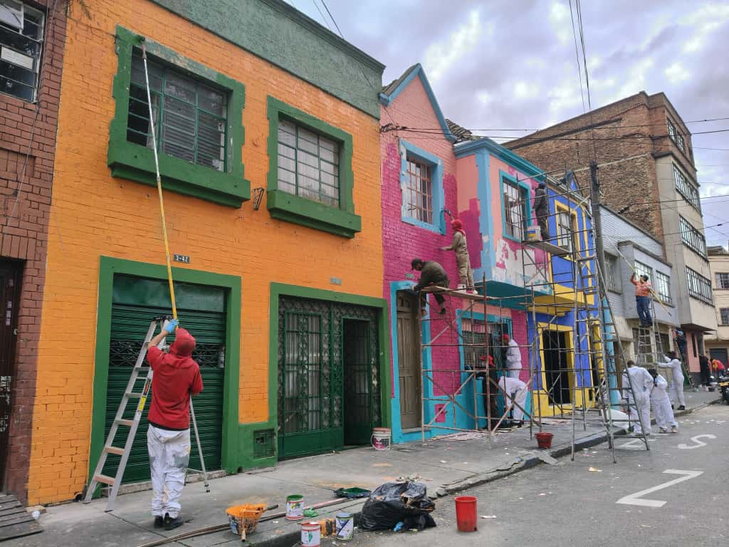 La comunidad de San Bernardo lideró una jornada de revitalización que transformó fachadas, juegos infantiles y un monumento patrimonial en el centro de Bogotá.