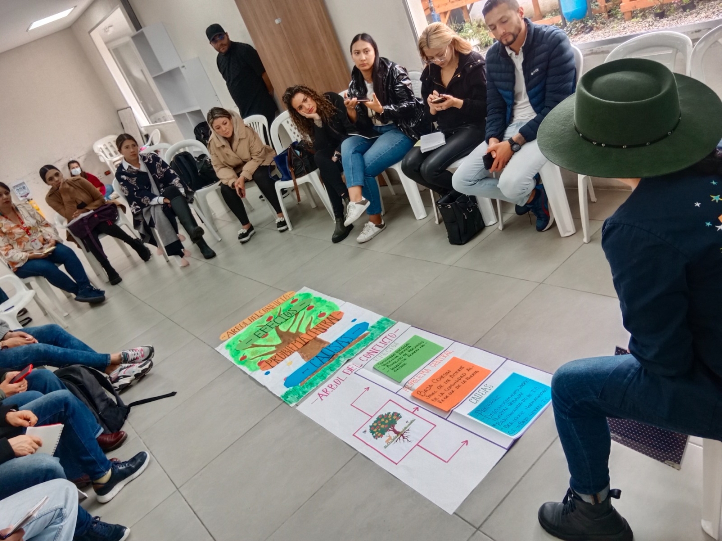 Finalmente, en la tercera fase, Delineando acciones inspiradoras, se trabajó con la herramienta del árbol del conflicto para identificar causas y efectos, lo cual permitió trazar acciones inspiradoras orientadas a transformar las conflictividades presentes en los territorios.