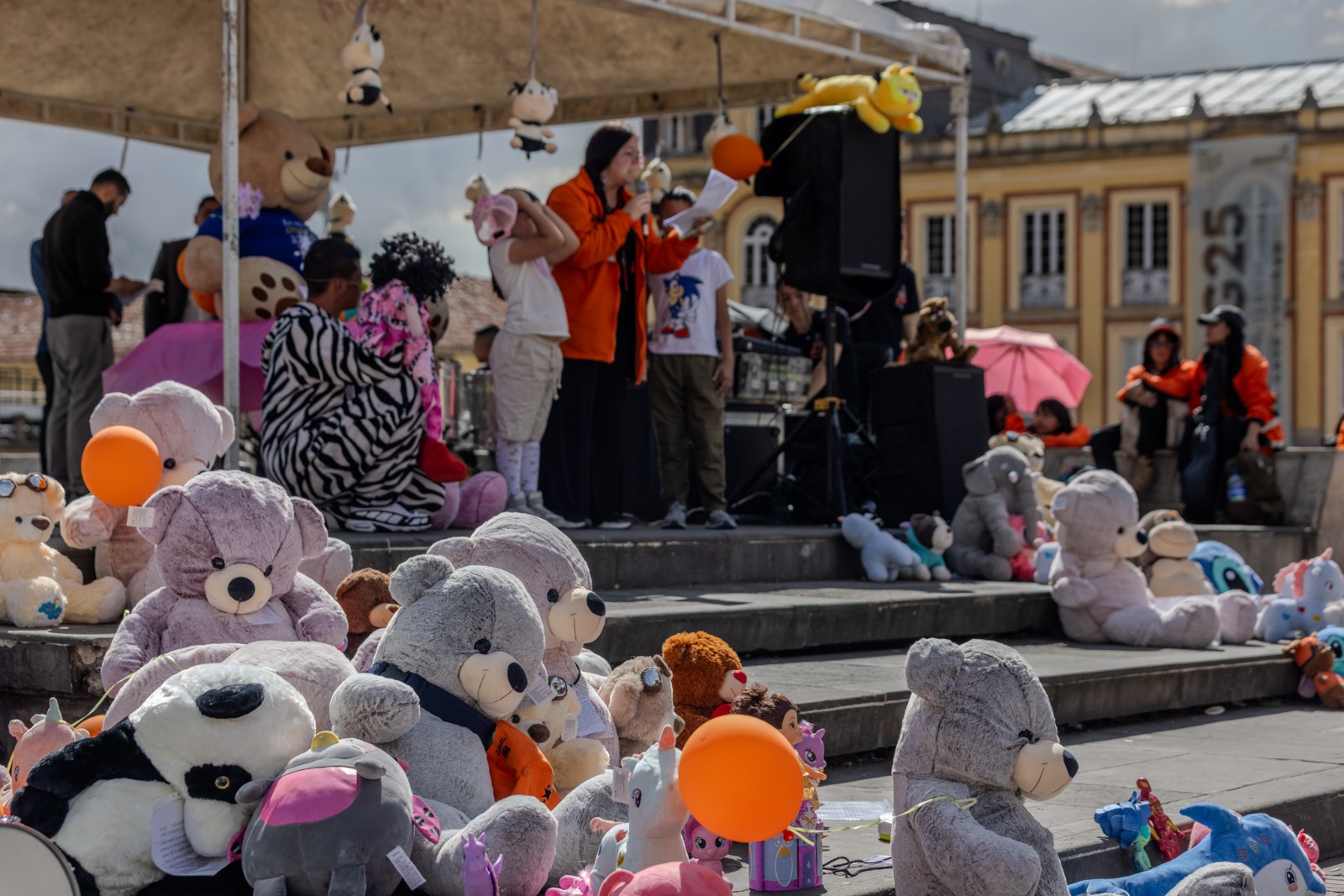 Con una exposición de peluches y juguetes en la Plaza de Bolívar, se compartió un mensaje claro y contundente: nunca es culpa de las niñas, niños o adolescentes.