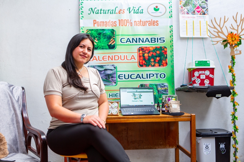 Para Jhoana lo mejor de Natural.es Vida es poder trabajar con su madre, quien fue quien la impulsó para que se inscribiera en el programa y con sus dos hermanos, quienes ayudan en las labores de producción de sus pomadas y han sido un apoyo muy valioso en esta microempresa familiar, cuyo sueño es poder empezar a vender sus productos al por mayor.