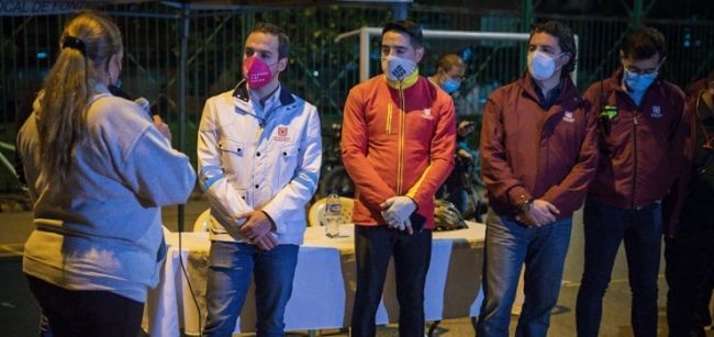 Bogotá, D. C., 28 de septiembre de 2021. Mejoramiento en la iluminación, mayor control y organización de vendedores informales, así como el fortalecimiento de frentes de seguridad y redes CUIDAdanas, fueron algunas de las conclusiones que dejó el #Patrullando nocturno en bicileta, que lideró el alcalde mayor (e), Luis Ernesto Gómez, en compañía del secretario de Seguridad, Aníbal Fernández de Soto.