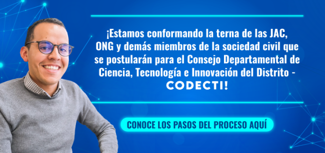 ¡Estamos conformando la terna de las JAC, ONG y demás miembros de la sociedad civil que se postularán para el Consejo Departamental de Ciencia, Tecnología e Innovación del Distrito!