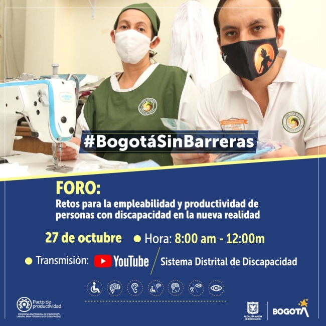 Con la participación de reconocidos expertos internacionales y nacionales en vinculación laboral para personas con discapacidad, el Sistema Distrital de Discapacidad realizará el próximo 27 de octubre un foro virtual en el que se analizarán los desafíos para impulsar la productividad y la empleabilidad de esta población en la nueva realidad.