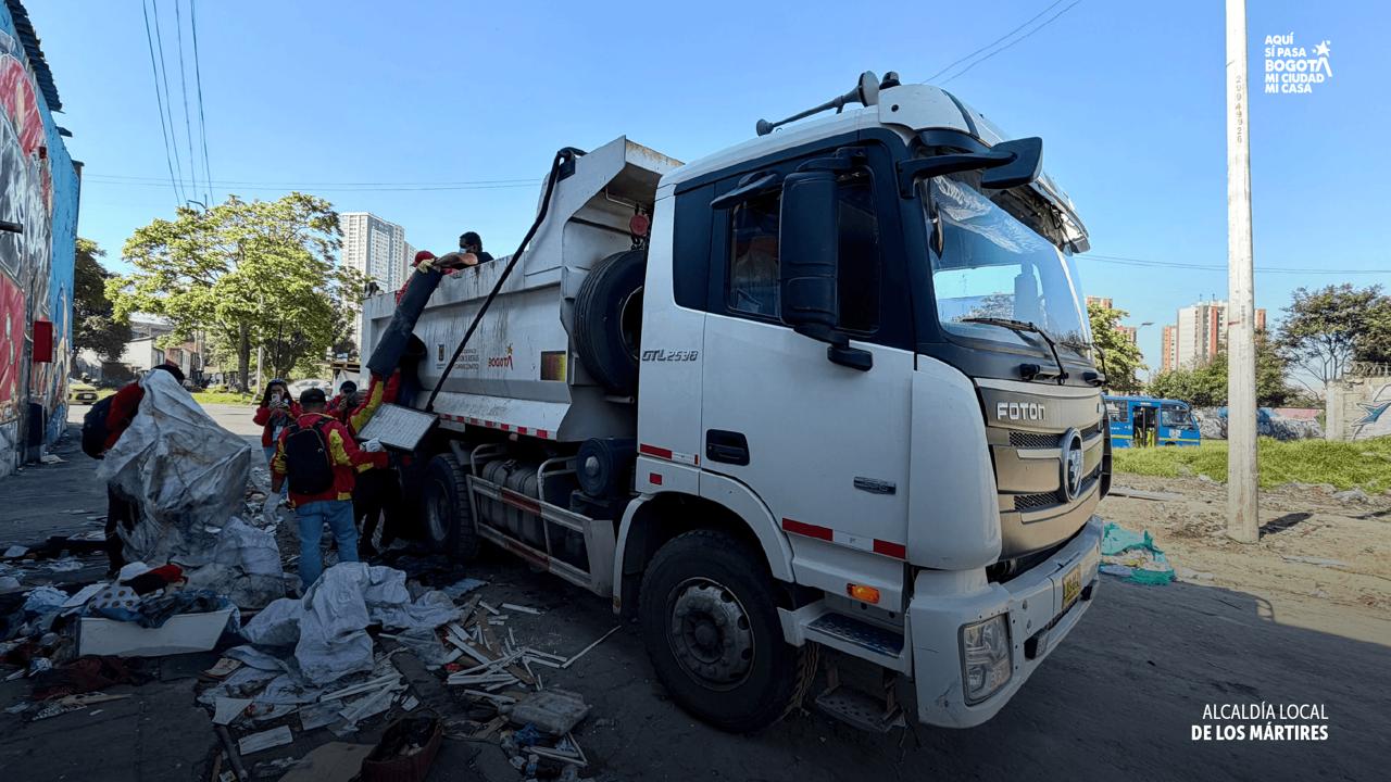 La Alcaldía Local de Los Mártires recuperó 1.800 m² en la Carrilera con limpieza, desmonte de 16 cambuches y retiro de residuos para mejorar ambiente y seguridad.