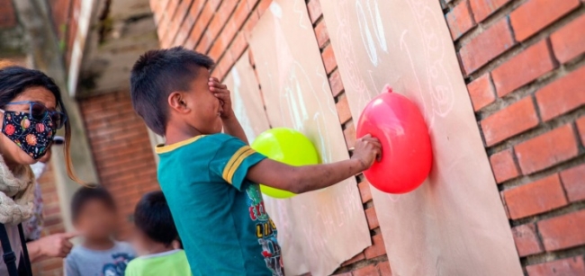 Son las 9 de la mañana, el sol brilla sobre la Unidad de Protección Integral de La Florida -UPI Diego, un pequeño de 7 años de la comunidad Embera ríe a carcajadas mientras juega con sus amiguitos a ‘pincharle la nariz al payaso’, una de las dinámicas que hacen junto al equipo de Integración Social del Distrito.
