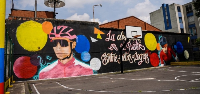 Por iniciativa de la JAC se pintó un mural en homenaje a Egan Bernal y Nairo Quintana.