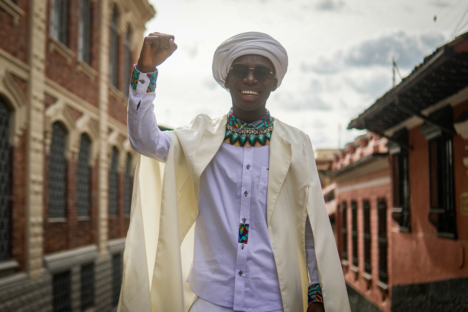 A la hora de hablar de identidad, es inevitable fijarse en su apariencia impecable; su forma de vestir es una declaración política de su ser afrocolombiano. “Lo llevo en cada prenda y forma de vestir; revelo mi ser a través del turbante, de los collares y de la ropa”.