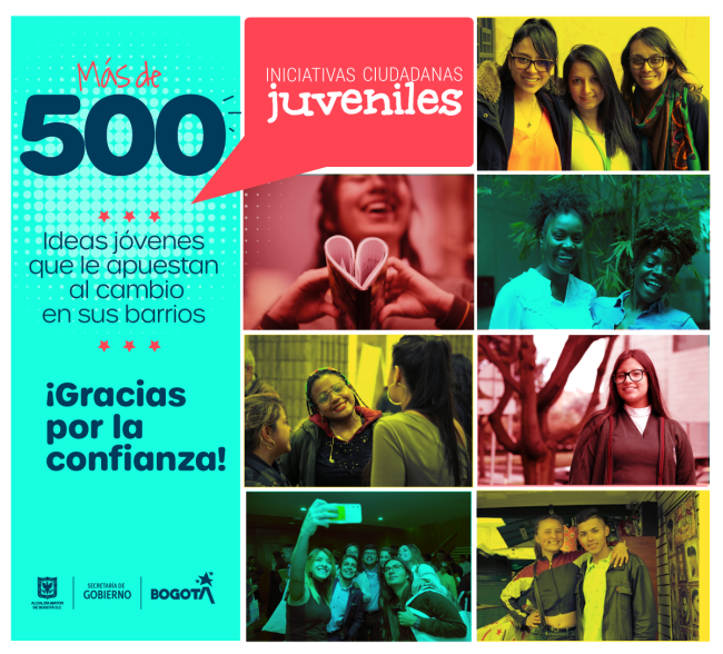 Más de 500 colectivos de jóvenes de Bogotá confiaron en el programa “Iniciativas Juveniles” de la Secretaría de Gobierno, junto a la OEI, que apoyará hasta con 10 millones de pesos sus mejores proyectos y que beneficiará a la gente de sus localidades.