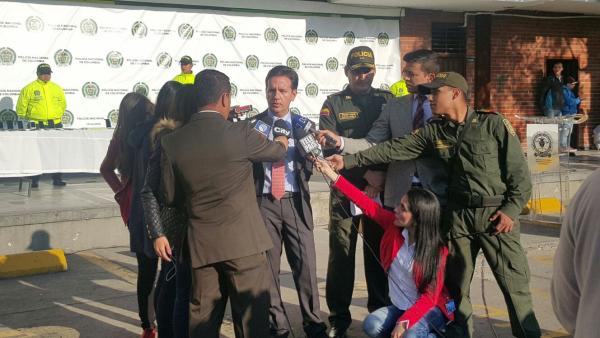 El Subsecretario de Seguridad de Bogotá, Daniel Mejía, durante el anuncio de un operativo realizado por la Policía Metropolitana de Bogotá y la Fisca