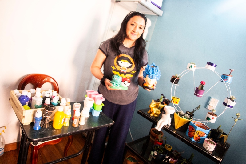 En la actualidad, gracias a los programas distritales donde participó ´Mujeres que Reverdecen´ e ´Impulso Local´ logró sacar adelante su emprendimiento y accedió a un beneficio económico de $2 millones, que le sirvieron para apalancar su idea de realizar cualquier tipo de matera personalizada con diseños y mensajes que ella elabora artesanalmente.