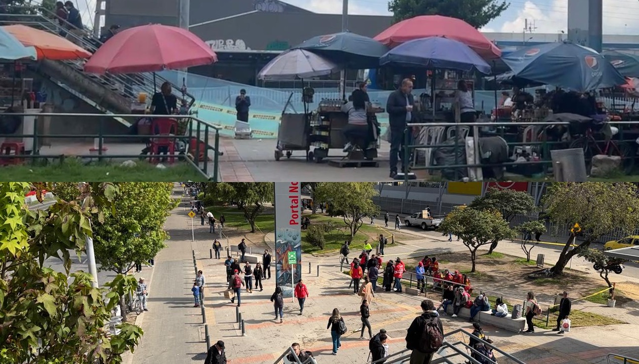 En un trabajo en equipo entre entidades distritales y las alcaldías locales de Suba y Usaquén, se adelantó una jornada de ‘Operación Espacio Público’ en los alrededores del puente peatonal del Portal Norte, logrando la recuperación de 1.500 metros cuadrados afectados por la ocupación indebida y la presencia de estructuras comerciales informales. Esta acción busca garantizar el libre tránsito, la seguridad y el disfrute ciudadano en una de las zonas más concurridas del norte de Bogotá.