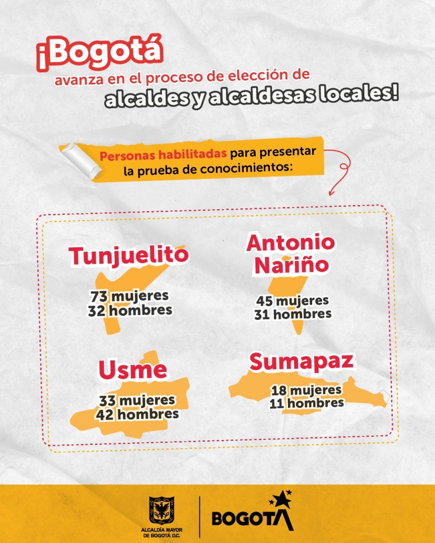 Bogotá avanza en el proceso meritocrático para la elección de alcaldesas y alcaldes locales de Usme, Tunjuelito, Antonio Nariño y Sumapaz.