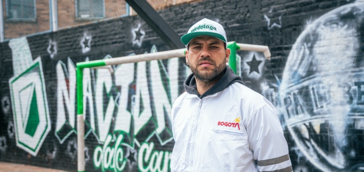 Jeffrey Gómez es hincha del Club Atlético Nacional y pertenece a la barra popular Los Del Sur Bogotá desde hace 19 años. Él hace parte del programa ‘