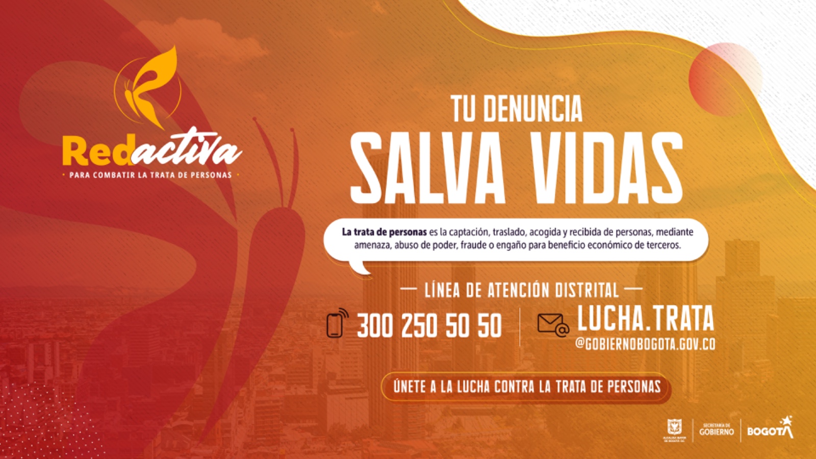 - RedActiva conmemora el Día de la Lucha contra la Trata de Personas con una megatoma en el Aeropuerto El Dorado, la Troncal Av. El Dorado y la Terminal Terrestre del Salitre.