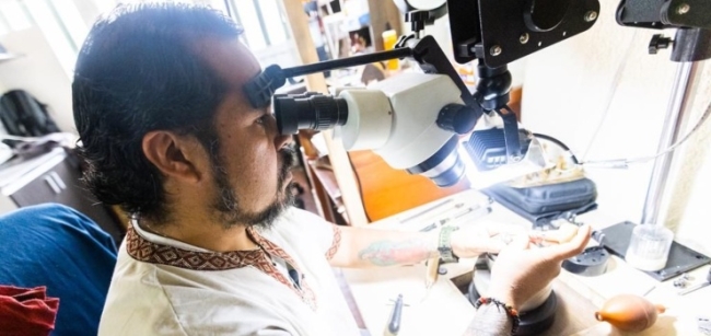 Con el aval conseguido, los únicos pasos que no estaba dispuesto a seguir era los de contaminar el medioambiente con su arte, lo cual es casi inevitable cuando se purifica el metal. “En Zasqa no utilizamos ningún tipo de químico. La joyería es muy perjudicial para la naturaleza porque utiliza ácidos para limpiar el material; en cambio, hemos hecho una labor conjunta con sabedores y mayores en la que hemos investigado las plantas que se utilizan para limpiar el metal y trabajar con ellas”, sostiene.