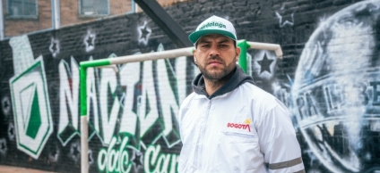 Jeffrey Gómez es hincha del Club Atlético Nacional y pertenece a la barra popular Los Del Sur Bogotá desde hace 19 años. Él hace parte del programa ‘