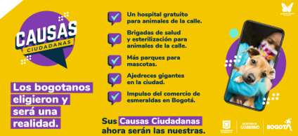 La creación de un hospital y brigadas de salud para animales de calle, parques para mascotas, ajedreces gigantes en la ciudad y la promoción de Bogot
