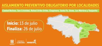 Desde este lunes 13 y hasta el 26 de julio, Chapinero, Santa Fe, Los Mártires, San Cristóbal, Rafael Uribe, Tunjuelito, Usme y Ciudad Bolívar estará