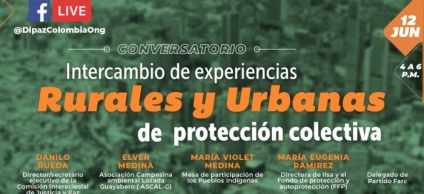 El viernes 12 de junio, a las 4pm, a través de Facebook live @DipazColombiaOng se realizará el conversatorio “Intercambio de experiencias rurales y