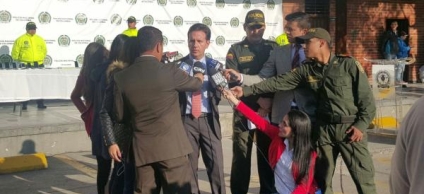 El Subsecretario de Seguridad de Bogotá, Daniel Mejía, durante el anuncio de un operativo realizado por la Policía Metropolitana de Bogotá y la Fisca